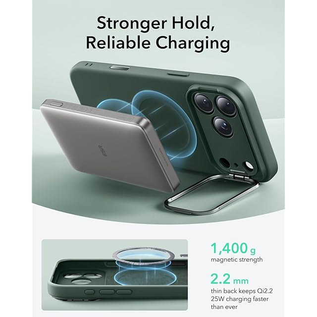 【強化された磁気ロック】ESR iPhone 17 Pro のケース1,400gの保持力を誇る強力なマグネットリングにより、より速く、簡単に置くだけで始まるワイヤレス充電と、あらゆるMagSafeアクセサリーとの確実な接続を実現します