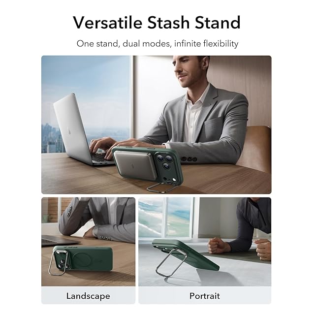 【受賞デザインスタンド!視聴も配信も自在】「スタンドケース、便利だけど邪魔じゃない?」いいえ、このスタンドは隠蔽式です!必要な時だけに出し、縦位置・横位置を自由自在に調整可能で、YouTube視聴はもちろん、TikTokやInstagramの縦長動画のライブ配信にも最適です。この独創的なデザインは、フレンチデザインアワード2024ゴールド賞を受賞しました!スタンドを使いながら同時にMagSafe充電もでき、革命的な便利さです
