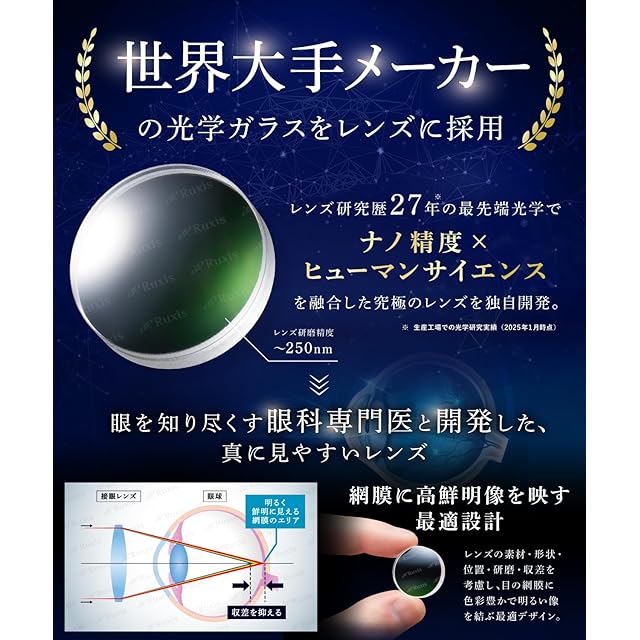 眼科医と工学博士が共同開発!Ruxis双眼鏡(オペラグラス)は、現代医学と先端工学の知見を融合し、”究極の見やすさ”を実現。ナノ単位で研磨した9層ものフルマルチコーティングを実装したプレミアムレンズを搭載し、視野の「明るさ」を飛躍的に高めました。超軽量140gでスマホより軽く、片手で持っても疲れ知らずです。ライブやコンサート、スポーツ観戦など様々なシーンで活躍し、推し活でも人気の双眼鏡です。