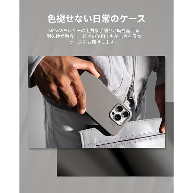 【MOVASの美しさ・柔らかな手触り】MOFT独自開発の「MOVAS」ヴィーガンレザーは、環境に優しい最新技術を採用し、肌になじむ柔らかな質感や究極の握り心地を満喫できます。 この素材は軽量で持ち運びやすく、美しさが長持ちし、長時間に使用しても上品な光沢を保ちます。ジーンズのポケットに入れても、鍵やカードキーなどと一緒に持ち歩いても、傷がつきにくいです。MOVASレザーケースは実用的なケースであるだけでなく、機能性を保ちながらiPhoneに洗練された感覚を加えるファッションのアイテムでもあります。