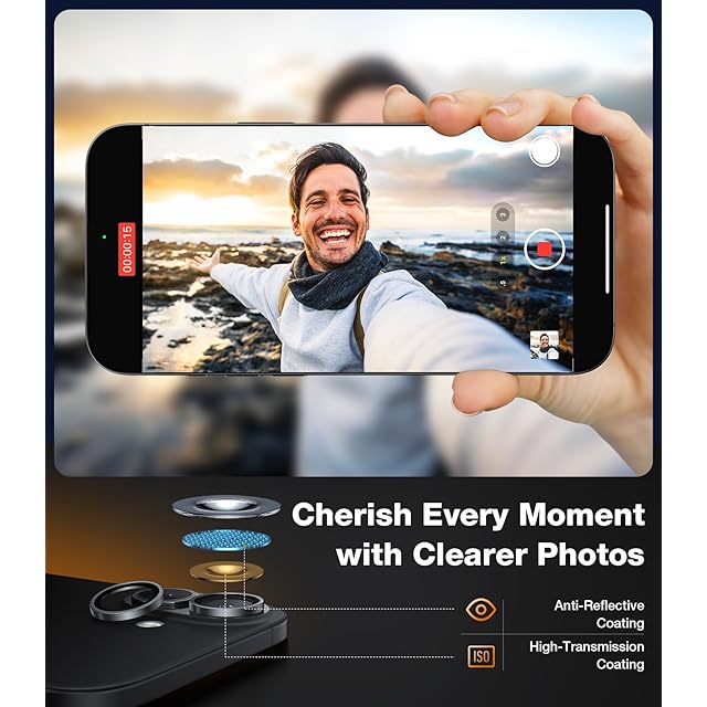 【デザインにこだわるあなたへ。貼っても、美しい。】For iPhone 17 のカメラデザインと調和するよう、PVDコーティングで同色・同質感を精密に再現。本来の艶や透明感をそのままに、レンズ本体と見分けがつかない一体感を実現しました。1:1精密加工によるエッジラインは、見た目だけでなく、指先で触れた瞬間にも違和感ゼロ。「貼っていることを忘れる美しさ」が日常に自然に溶け込みます。特に自撮りやミラー越しの写真、ダブル撮影などの場合では、レンズの仕上がりがそのまま映り込み、“保護しているのに、デザインは損なわない”というTORRASの強みが最大限に発揮されます。(For iPhone 17 カメラフィルム)