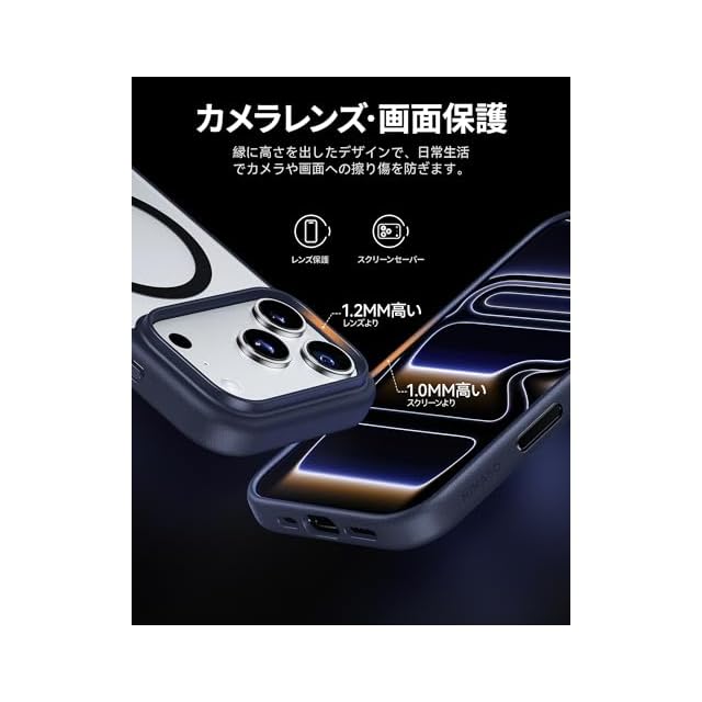 商品名:NIMASO iPhone 17 Pro 用 ケース MagSafeアクセサリー対応 スマホケース マグセーフ カバー 滑り止め マット仕上げ 全面保護 いPhone17Pro用 耐衝撃 米軍MIL規格取得 ワイヤレス充電 カメラコントロールカバー ストラップホール付き 携帯スマホケース アイフォン17プロ対応 (6.3インチ) ブルー (黒羽シリーズ) NSC25G1879