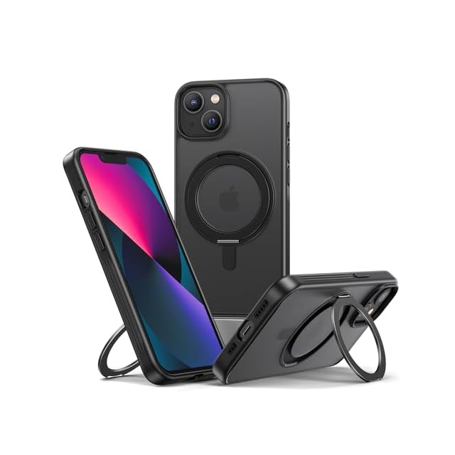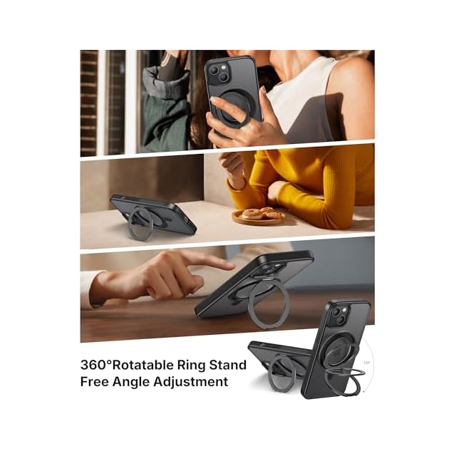 NIMASO iPhone 13/14 用 ケース 縦横両対応 360°回転スタンドケース MagSafe対応 携帯スマホケース リングマグネット搭載 カバー いPhone13/14対応 ワイヤレス充電対応 マット感 防指紋 米軍MIL規格 耐衝撃性 アジャスタブルスタンド アイフォン13/14対応 (6.1インチ) ブラック (黒羽シリーズ)NSC24K1550