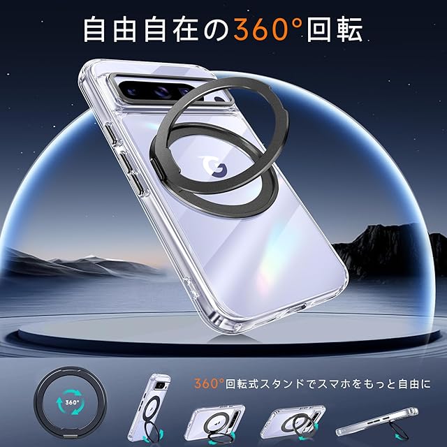 商品名:【米軍MIL規格・Magsafe対応】Google Pixel 8 Pro 用 ケース MagSafe対応 リング360°回転スタンド機能 縦横両対応 透明 黄ばみ防止 ワイヤレス充電 レンズ保護 耐衝撃 携帯カバー 6.7 インチ マグネット搭載 車載ホルダー マグセーフ対応 おしゃれ (クリアブラック)