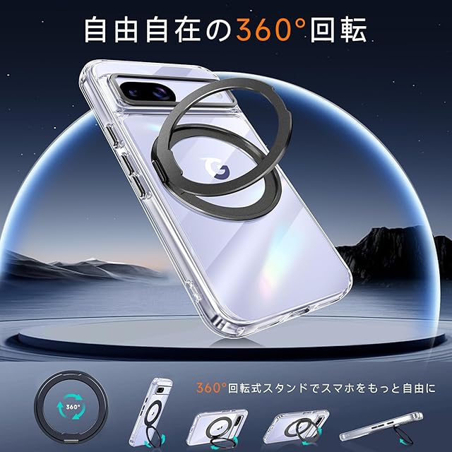 商品名:【米軍MIL規格・Magsafe対応】Google Pixel 8A 用 ケース MagSafe対応 リング 360°回転スタンド機能 縦横両対応 透明 黄ばみ防止 ワイヤレス充電 レンズ保護 耐衝撃 携帯カバー グーグルピクセル8A カバー 6.1 インチ マグネット搭載 車載ホルダー マグセーフ対応 おしゃれ (クリアブラック)
