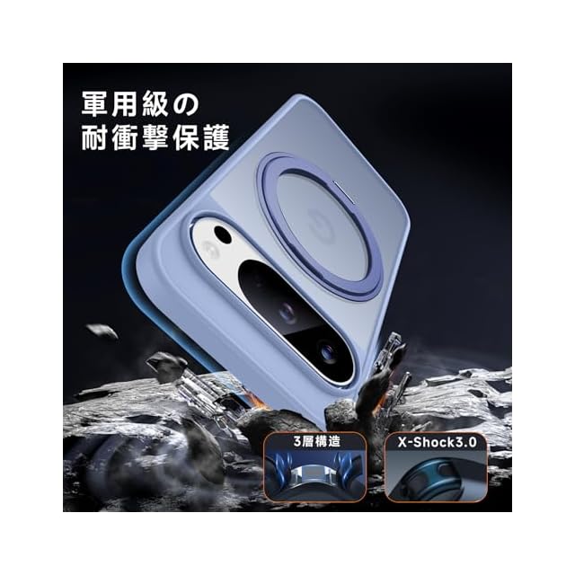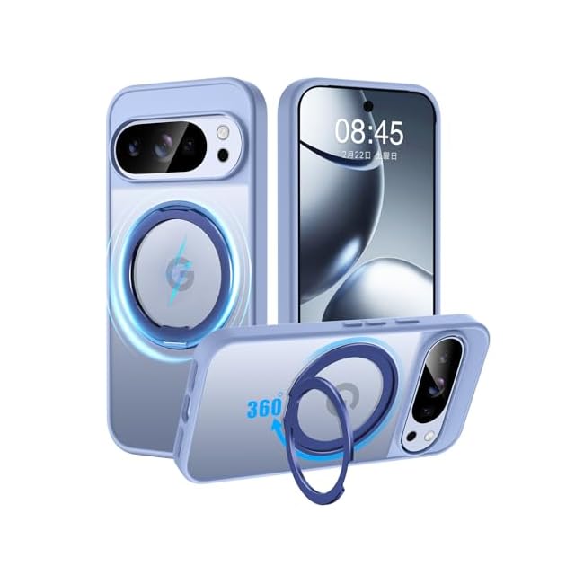 商品名:【米軍MIL規格・Magsafe対応】Google Pixel 10 Pro XL 用 ケース MagSafe対応 リング360°回転スタンド機能 縦横両対応 半透明 黄ばみ防止 ワイヤレス充電 レンズ保護 耐衝撃 携帯カバー 6.8 インチ マグネット搭載 車載ホルダー マグセーフ対応 おしゃれ (ライトブルー)