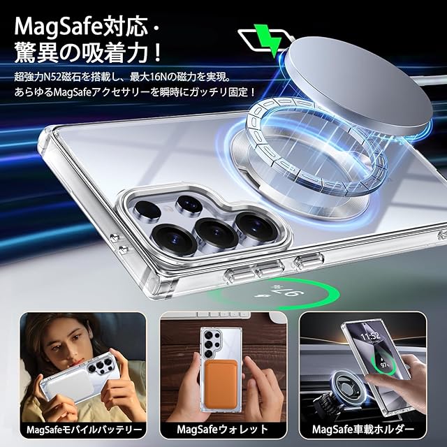 【高品質素材で実現! 斬新黄ばみ防技術・極致の透明度】このGalaxy S24 Ultra ケース magsafe、ドイツ製バイエルTPU素材や高品質のPC素材を採用、黄ばみ防止、スマホを長時間使用しても光沢感、透明感を保つことができます!表面はナノ撥油加工を施し指紋・油汚れを95%軽減。安心のアフターサポートを提供します。ご不明な点がございましたら、あるいは製品に不具合が生じた場合はあれば、いつでもお気軽にご連絡ください。
