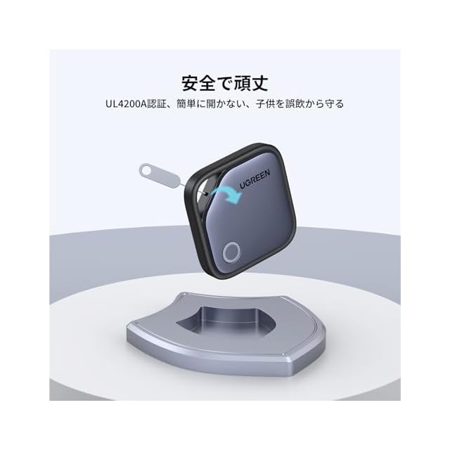 【電池交換可能、電池寿命2年】UGREENトラッカーは、交換可能なバッテリーと2年間の長時間の稼働時間です:225mAhの内蔵バッテリーと低消費電力チップを採用しており、CR2032ボタン電池を使用しているため、「探す」アプリで電力を簡単に確認できます。そして、UL4200A認証を取得しており、安全で頑丈な構造になっているため、子供が簡単にカバーを開けてボタン電池を誤飲することを防ぐことができます。