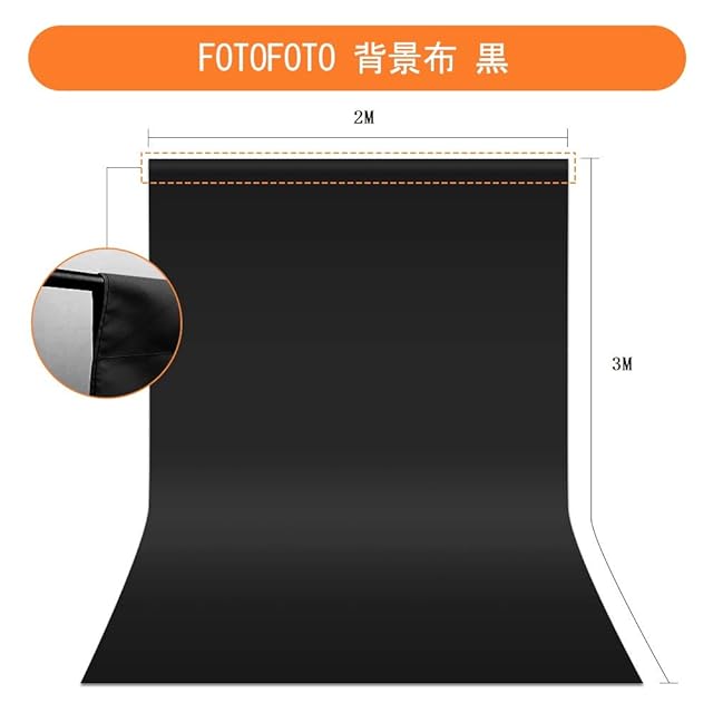 商品名:FotoFoto 背景布 黒布 (2m x 3m) ブランド:FotoFoto サイズ:広さ2m、長さ3m 材質:ポリエステル製 重量:約0.65㎏ 特徴: 1、この背景布 黒布はポリエステル材質を採用しており、綿製よりシワが目立たなく、低温アイロンでシワを簡単に取れます。 2、暗幕は両面設計により、表面はピーチスキン加工で、少し起毛感があり、写真をより上品的に撮影できます。黒幕の裏面は滑らかで、別の撮影ニーズに満足して両用できて、非常に使用便利です。 3、黒 布は汚れる場合、手でも洗濯機でも洗濯して干すことができます。 4、パイプ差し込み設計で、直接に背景スタンドのポールを背景布 黒に差し込むだけで、設置できます。 5、一体成型で継ぎ目がなく、製品撮影 / ポートレート写真撮影 / プロの写真スタジオ撮影に適するほかに、結婚式 / ベビーシャワー / パーティーの装飾 / 誕生日 / youtube 動画の撮影に使用可能な撮影 黒 布です。 パッケージ内容: 1x背景布 黒 (2 x 3m)