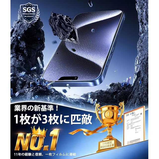 【1枚が3枚に匹敵】硬度が9Hを超え、エッジの強化設計により画面の隅々までしっかり保護されます。