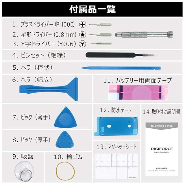 商品名:DIGIFORCE for iPhone 8 Plus バッテリー 互換 交換 大容量 日本メーカー【工具セット】