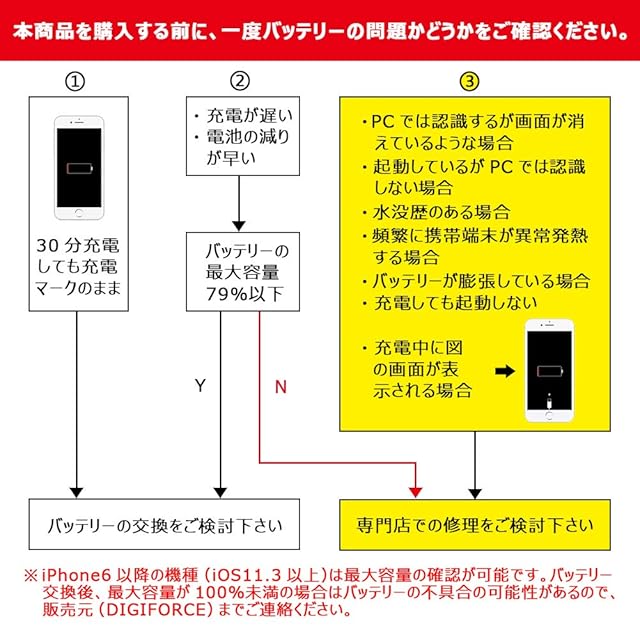 国内出荷前に(一定電量を保つため)全品再検査を行った、サイクルカウント3回以下の商品となっております。純正品と同様のTI社製ICチップを使用しているので、iOSのアップデート後も安心してご利用いただけます。