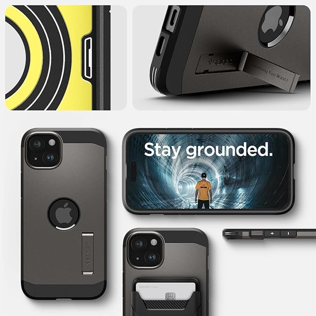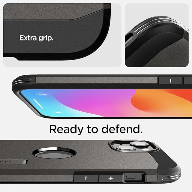 Spigen 【創業18年の技術力】 iPhone 15 ケース MagSafe 耐衝撃 スタンド付き 米軍MIL規格取得 マグネット搭載 3層構造 カメラ保護 傷防止 衝撃吸収 ワイヤレス充電対応 タフ・アーマー・マグフィット ACS06810 (ガンメタル)