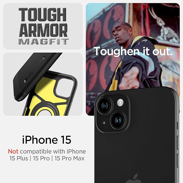 Spigen 【創業18年の技術力】 iPhone 15 ケース MagSafe 耐衝撃 スタンド付き 米軍MIL規格取得 マグネット搭載 3層構造 カメラ保護 傷防止 衝撃吸収 ワイヤレス充電対応 タフ・アーマー・マグフィット ACS06811 (ブラック)