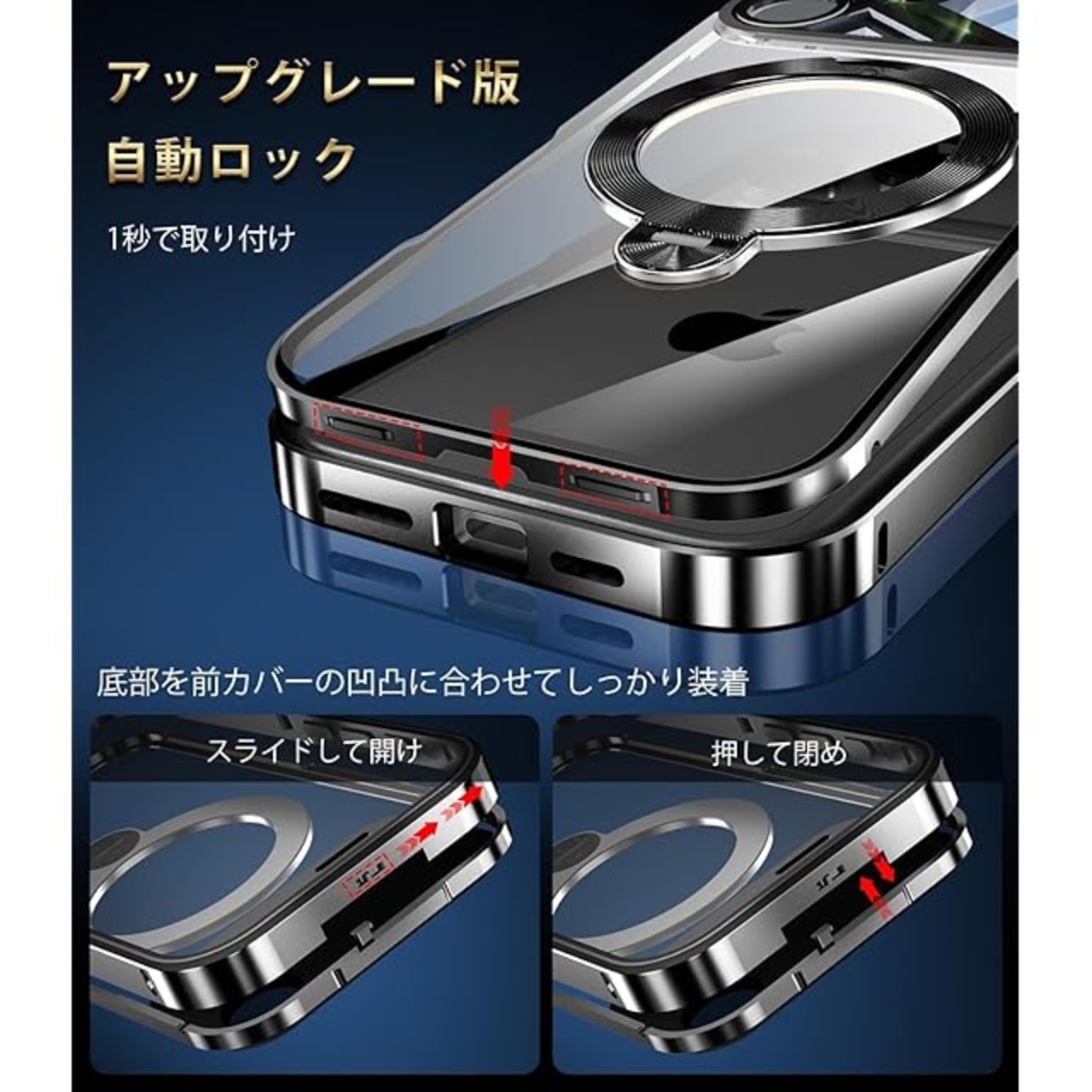 商品名:iPhone 17 用 ケース 両面保護 MagSafe対応 光沢CD紋様リング 360°定点回転スタンド 自動ポップアップロック付き カメラレンズフル保護 いphone 17 用 Gunwon スマホケース アルミ合金バンパー 9H一体型保護フィルム 背面クリア 全面保護 フルカバー ワイヤレス充電 縦横両対応 アイフォン 17 用 携帯ケース「ブラック」