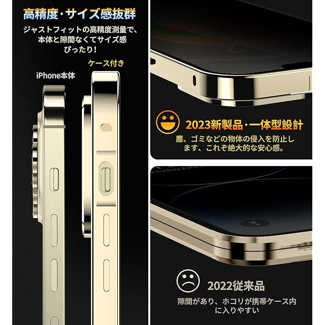 【ロック付きと一体型レンズ保護カバー】このアイフォン12 Pro ケースは上部にスライドボタン式のロックでケースの前後パーツをしっかり固定、万が一落下してもケースが分離せず、携帯がケースから飛び出す心配ないです。上部のボタンを押すだけで、ロックの解除も簡単、取り付けで開く非常に便利です。このスマホケース iphone12 proに統合レンズ保護カバーは、レンズを完全にカバーして保護します。また、このレンズ保護カバーは擦り傷防止、塵などの侵入を防止します。レンズ保護カバーの形状はiPhoneのオリジナルデザインを損ねることなく、ボディと一体化しています。注意:このiPhone12プロ ケースを使用するときは、画面に他のガラスフィルムを貼り付けないでください。タッチスクリーンの感度が非常に悪くなることがあります。