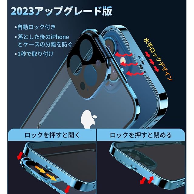 【ロック付きと一体型レンズ保護カバー】このアイフォン12 Pro ケースは上部にスライドボタン式のロックでケースの前後パーツをしっかり固定、万が一落下してもケースが分離せず、携帯がケースから飛び出す心配ないです。上部のボタンを押すだけで、ロックの解除も簡単、取り付けで開く非常に便利です。このスマホケース iphone12 proに統合レンズ保護カバーは、レンズを完全にカバーして保護します。また、このレンズ保護カバーは擦り傷防止、塵などの侵入を防止します。レンズ保護カバーの形状はiPhoneのオリジナルデザインを損ねることなく、ボディと一体化しています。注意:このiPhone12プロ ケースを使用するときは、画面に他のガラスフィルムを貼り付けないでください。タッチスクリーンの感度が非常に悪くなることがあります。