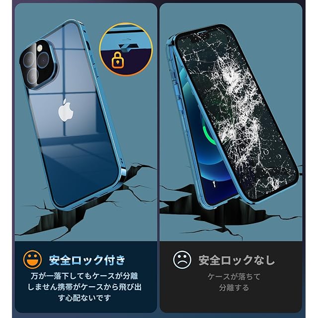 このアイフォン12 Pro ケースは上部にスライドボタン式のロックでケースの前後パーツをしっかり固定、万が一落下してもケースが分離せず、携帯がケースから飛び出す心配ないです。