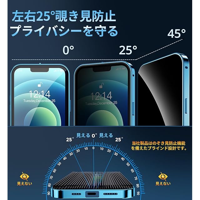 【覗き見防止とプライバシー保護】このiPhone12プロ ケースは、覗き見防止技術により、左右の視野からの視線を防ぎ、画面のプライバシーを守ります。このiPhone12 Pro ケースは、斜めから見るとブラインドルーバーにより画面が真っ黒になりますが、真正面から見ると高透過率ではっきり見ることが出来ます。画面内容は勿論、個人情報も完璧守られます。満員電車や会議室など、様々な場所で活躍し【プライバシーを守り】ます。公共の場で他人に画面を見られるのが嫌な方はぜひ使ってみて下さい!画面を使用したバーコード決済などは、画面を明るくしてご使用ください。