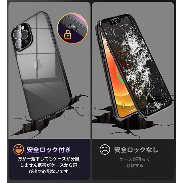 【ロック付きと一体型レンズ保護カバー】このアイフォン12 Pro Max ケースは上部にスライドボタン式のロックでケースの前後パーツをしっかり固定、万が一落下してもケースが分離せず、携帯がケースから飛び出す心配ないです。上部のボタンを押すだけで、ロックの解除も簡単、取り付けで開く非常に便利です。このスマホケース iphone 12promaxに統合レンズ保護カバーは、レンズを完全にカバーして保護します。また、このレンズ保護カバーは擦り傷防止、塵などの侵入を防止します。レンズ保護カバーの形状はiPhoneのオリジナルデザインを損ねることなく、ボディと一体化しています。注意:このiPhone12プロマックスケースを使用するときは、画面に他のガラスフィルムを貼り付けないでください。タッチスクリーンの感度が非常に悪くなることがあります。