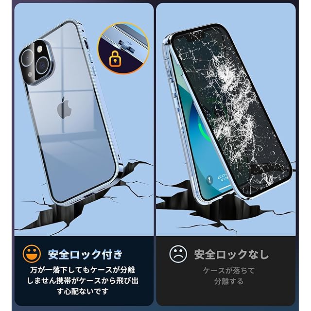 【ロック付きと一体型レンズ保護カバー】このアイフォン13ケースは上部にスライドボタン式のロックでケースの前後パーツをしっかり固定、万が一落下してもケースが分離せず、携帯がケースから飛び出す心配ないです。上部のボタンを押すだけで、ロックの解除も簡単、取り付けで開く非常に便利です。このスマホケース iphone 13に統合レンズ保護カバーは、レンズを完全にカバーして保護します。また、このレンズ保護カバーは擦り傷防止、塵などの侵入を防止します。レンズ保護カバーの形状はiPhoneのオリジナルデザインを損ねることなく、ボディと一体化しています。注意:このあいふぉん13ケースを使用するときは、画面に他のガラスフィルムを貼り付けないでください。タッチスクリーンの感度が非常に悪くなることがあります。