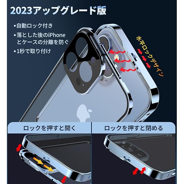 【ロック付きと一体型レンズ保護カバー】このアイフォン13 Pro ケースは上部にスライドボタン式のロックでケースの前後パーツをしっかり固定、万が一落下してもケースが分離せず、携帯がケースから飛び出す心配ないです。上部のボタンを押すだけで、ロックの解除も簡単、取り付けで開く非常に便利です。このスマホケース iphone13 proに統合レンズ保護カバーは、レンズを完全にカバーして保護します。また、このレンズ保護カバーは擦り傷防止、塵などの侵入を防止します。レンズ保護カバーの形状はiPhoneのオリジナルデザインを損ねることなく、ボディと一体化しています。注意:このiPhone13プロ ケースを使用するときは、画面に他のガラスフィルムを貼り付けないでください。タッチスクリーンの感度が非常に悪くなることがあります。