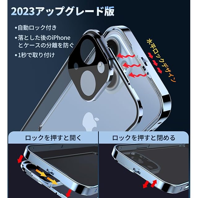 【ロック付きと一体型レンズ保護カバー】このアイフォン13 mini ケースは上部にスライドボタン式のロックでケースの前後パーツをしっかり固定、万が一落下してもケースが分離せず、携帯がケースから飛び出す心配ないです。上部のボタンを押すだけで、ロックの解除も簡単、取り付けで開く非常に便利です。このスマホケース iphone13 miniに統合レンズ保護カバーは、レンズを完全にカバーして保護します。また、このレンズ保護カバーは擦り傷防止、塵などの侵入を防止します。レンズ保護カバーの形状はiPhoneのオリジナルデザインを損ねることなく、ボディと一体化しています。注意:このiPhone13ミニ ケースを使用するときは、画面に他のガラスフィルムを貼り付けないでください。タッチスクリーンの感度が非常に悪くなることがあります。