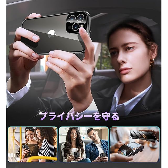 【覗き見防止とプライバシー保護】このiPhone15プロマックスケースは、覗き見防止技術により、左右の視野からの視線を防ぎ、画面のプライバシーを守ります。このiPhone15 Pro Max ケースは、斜めから見るとブラインドルーバーにより画面が真っ黒になりますが、真正面から見ると高透過率ではっきり見ることが出来ます。画面内容は勿論、個人情報も完璧守られます。満員電車や会議室など、様々な場所で活躍し【プライバシーを守り】ます。公共の場で他人に画面を見られるのが嫌な方はぜひ使ってみて下さい!画面を使用したバーコード決済などは、画面を明るくしてご使用ください。