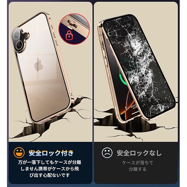 このアイフォン16 Plus ケースは上部にスライドボタン式のロックでケースの前後パーツをしっかり固定、万が一落下してもケースが分離せず、携帯がケースから飛び出す心配ないです。