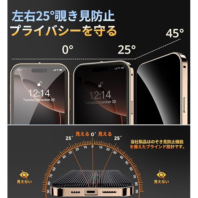 【覗き見防止とプライバシー保護】このiPhone16プラス ケースは、覗き見防止技術により、左右の視野からの視線を防ぎ、画面のプライバシーを守ります。このiPhone16 Plus ケースは、斜めから見るとブラインドルーバーにより画面が真っ黒になりますが、真正面から見ると高透過率ではっきり見ることが出来ます。画面内容は勿論、個人情報も完璧守られます。満員電車や会議室など、様々な場所で活躍し【プライバシーを守り】ます。公共の場で他人に画面を見られるのが嫌な方はぜひ使ってみて下さい!画面を使用したバーコード決済などは、画面を明るくしてご使用ください。