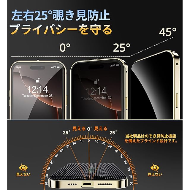 【覗き見防止とプライバシー保護】このiPhone16プロ ケースは、覗き見防止技術により、左右の視野からの視線を防ぎ、画面のプライバシーを守ります。このiPhone16 Pro ケースは、斜めから見るとブラインドルーバーにより画面が真っ黒になりますが、真正面から見ると高透過率ではっきり見ることが出来ます。画面内容は勿論、個人情報も完璧守られます。満員電車や会議室など、様々な場所で活躍し【プライバシーを守り】ます。公共の場で他人に画面を見られるのが嫌な方はぜひ使ってみて下さい!画面を使用したバーコード決済などは、画面を明るくしてご使用ください。