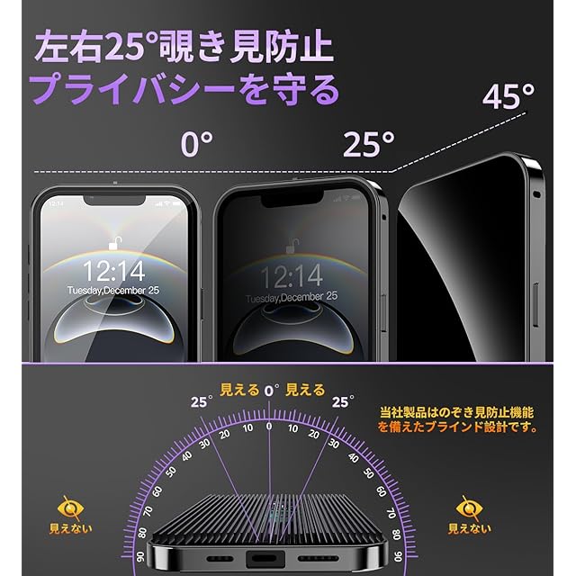 【覗き見防止とプライバシー保護】このあいふぉん16eケースは、覗き見防止技術により、左右の視野からの視線を防ぎ、画面のプライバシーを守ります。このiPhone16eケースは、斜めから見るとブラインドルーバーにより画面が真っ黒になりますが、真正面から見ると高透過率ではっきり見ることが出来ます。画面内容は勿論、個人情報も完璧守られます。満員電車や会議室など、様々な場所で活躍し【プライバシーを守り】ます。公共の場で他人に画面を見られるのが嫌な方はぜひ使ってみて下さい!画面を使用したバーコード決済などは、画面を明るくしてご使用ください。