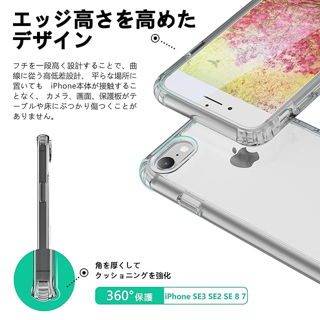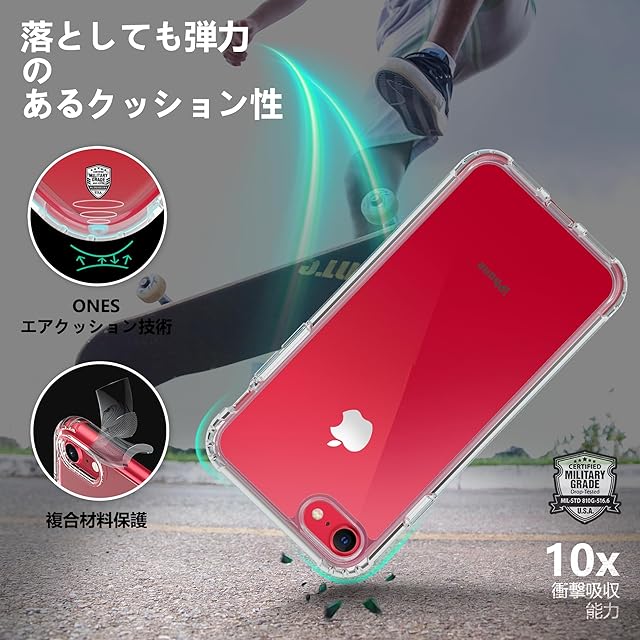 商品名:ONES iPhone SE3 SE2 SE 8 7 HD超透明 ハード ケース 米軍MIL規格 エアバッグ 超耐衝撃 レンズ保護 画面保護 「 強化PC保護板 ✚ 衝撃吸収シリコンバンパー 」 Qiワイヤレス充電 傷防止 滑り止め 超軽量 持ちやすい 黄ばみ防止 クリア カバー