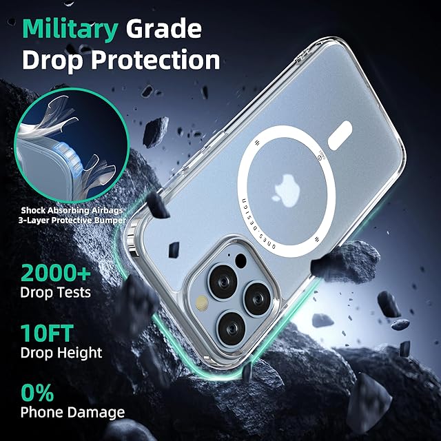 ONES 艶消し·透明 iPhone13Pro 超強磁性MagSafe対応 ハードケース 米軍MIL規格 エアバッグ 超耐衝撃 レンズ保護 画面保護 「 高靭性強化PC保護板 ✚ 高弾性衝撃吸収·シリコンバンパー 」 Qiワイヤレス充電 傷防止 滑り止め 超軽量 持ちやすい 黄ばみ防止 クリスタル クリア マグネット カバー