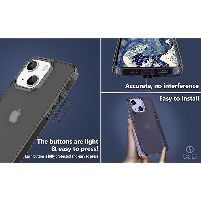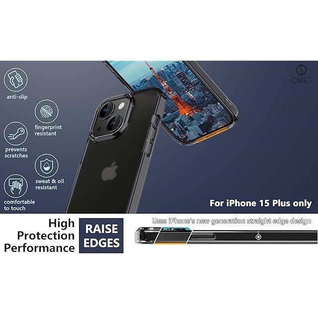 【 指紋防止 · 耐衝撃 エアバッグ · 超軽量 薄型 】 ONES 艶消し · 半透明 iPhone15Plus ハードケース 米軍MIL規格 〔 マット感·高靭性·強化PC保護板 ✚ 高弾性·衝撃吸収·シリコンバンパー 〕『 レンズ保護 · 画面保護 』 Qi充電 ストラップホール 滑り止め 黄変防止 つや消し クリア カバー