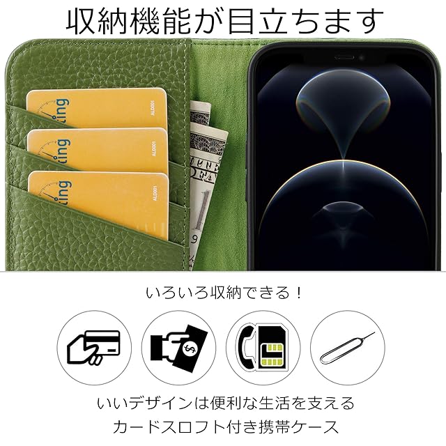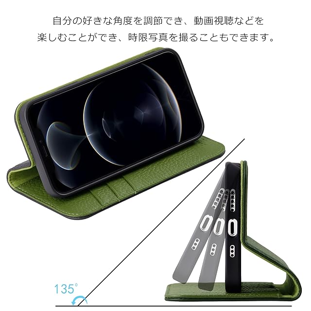 商品名:VISOUL iPhone 13 ケース 手帳型 本革 レザー 全面保護 マグネット式 カード収納 アイフォン13 ケース 横置きスタンド機能付き手帳型ケース 2021年発売 iphone 13 対応 6.1インチ シュリンクレザーアイホン13 グリーン