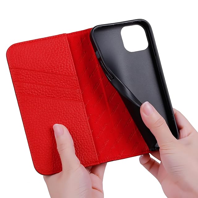 VISOUL iPhone 13 mini ケース手帳型 本革 アイフォン13ミニ ケース 手帳型 レザー スマホケース カード収納 携帯ケース 全面保護 マグネット 横置きスタンド機能付き アイフォン 13 ミニ ケース iphone 13 mini 対応 5.4インチ シュリンクレザーアイホン13 mini レッド