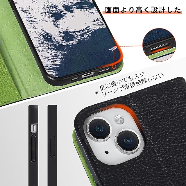 商品名:VISOUL iPhone14 ケース 手帳型 本革 アイフォン14 ケース 手帳型 本革 レザー スマホケース iPhone 14 手帳ケース 柔軟なTPU素材 カード収納 携帯ケース 全面保護 マグネット 横置きスタンド アイフォン14 手帳 対応 6.1インチ iphone 14 緑