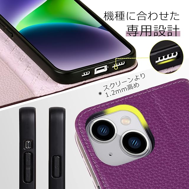 商品名:VISOUL iphone14 ケース 手帳型 本革 レザー アイフォン14 手帳型ケース カード収納 携帯ケース 全面保護 柔軟なTPU素材 マグネット式 スタンド機能付き スマホケース アイホン14対応 6.1インチ iphone 14 パープル ピック