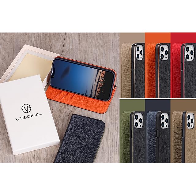 商品名:VISOUL iPhone 14 Pro ケース 手帳型 本革 レザー 衝撃吸収TPU素材 全面保護 マグネット式 カード収納 多機能 アイフォン14 Pro ケース 横置きスタンド機能付き手帳型ケース 2022年発売 アイホン14 Pro 対応 6.1インチ iphone 14 Pro ネイビー