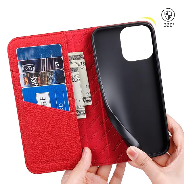 VISOUL iPhone 14 ProMax ケース 手帳型 アイフォン14 ProMax 手帳型 ケース 本革 レザー スマホケース カード収納 携帯ケース 全面保護 マグネット 横置きスタンド機能付き 柔軟なTPU素材 落下防止 iPhone 14 ProMaxケース アイフォン14 ProMax ケース 対応 6.7インチ iphone 14 ProMax レッド