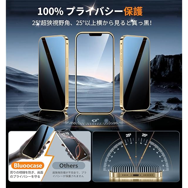 【完全防御!スマホ&プライバシーの二重防護】このいphone13promax 全面保護ケースは、プライバシー保護と軍用レベルの防御機能を両立した両面完全防護ケース。"見えない装甲"のような全方位ガードを実現しました。画面と一体型レンズカバーには9H軍用級強化ガラスを採用し、従来材質比3倍の耐キズ性能を発揮。特に防覗(プライバシー)フィルムは25°ゴールドアングルを実現(一般的な28°より精密),超薄型貼り付け工法によりタッチ感度を損ないません。フレームは航空機級アルミニウム合金を27の精密工程で加工。金属の高級質感を保ちつつ、特殊構造設計で電波妨害をゼロに抑えました。このアイフォン13 pro max 全面 ケースはプライバシー保護と物理的防御の完璧なバランスを実現する逸品です