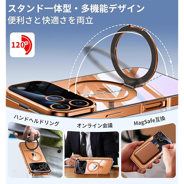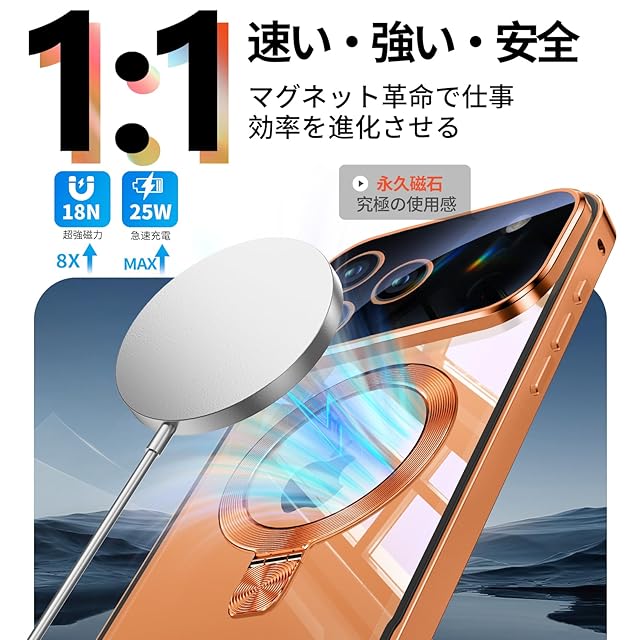 【3in1超進化スタンド・驚異の実用性!】当店のiphone17pro 携帯ケースは、スタンド・リング・ワイヤレス充電対応の3機能を一つに集約。30000回以上の開閉テストをクリアした耐久性に加え、指紋やキズにも強い高耐久設計を実現しています。通勤中の語学学習、リモートワークでのビデオ会議、キッチンでのレシピ確認、アウトドアでの自撮りなど、あらゆるシーンで驚くべき実用性を発揮します。リングモードでは、指を引っ掛けるだけで安定保持が可能。満員電車の中でも落下の心配がなく、安心してお使いいただけます。さらに、このアイホン17 pro ケースは、業界最強クラスのN56マグネットを採用(従来比20倍の吸着力)。マグセーフ対応の車載ホルダーに装着すれば、悪路でもしっかり固定され、快適なドライブをお楽しみください