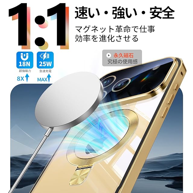 【3in1超進化スタンド・驚異の実用性!】当店のiphone17pro 携帯ケースは、スタンド・リング・ワイヤレス充電対応の3機能を一つに集約。30000回以上の開閉テストをクリアした耐久性に加え、指紋やキズにも強い高耐久設計を実現しています。通勤中の語学学習、リモートワークでのビデオ会議、キッチンでのレシピ確認、アウトドアでの自撮りなど、あらゆるシーンで驚くべき実用性を発揮します。リングモードでは、指を引っ掛けるだけで安定保持が可能。満員電車の中でも落下の心配がなく、安心してお使いいただけます。さらに、このアイホン17 pro ケースは、業界最強クラスのN56マグネットを採用(従来比20倍の吸着力)。マグセーフ対応の車載ホルダーに装着すれば、悪路でもしっかり固定され、快適なドライブをお楽しみください