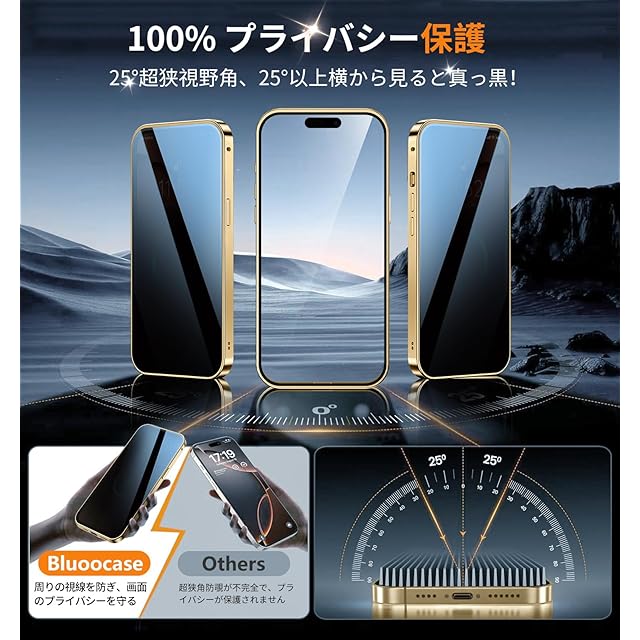 【完全防御!スマホ&プライバシーの二重防護】このいphone17pro 全面保護ケースは、プライバシー保護と軍用レベルの防御機能を両立した両面完全防護ケース。"見えない装甲"のような全方位ガードを実現しました。画面と一体型レンズカバーには9H軍用級強化ガラスを採用し、従来材質比3倍の耐キズ性能を発揮。特に防覗(プライバシー)フィルムは25°ゴールドアングルを実現(一般的な28°より精密),超薄型貼り付け工法によりタッチ感度を損ないません。フレームは航空機級アルミニウム合金を27の精密工程で加工。金属の高級質感を保ちつつ、特殊構造設計で電波妨害をゼロに抑えました。このアイフォン17 pro 全面 ケースはプライバシー保護と物理的防御の完璧なバランスを実現する逸品です