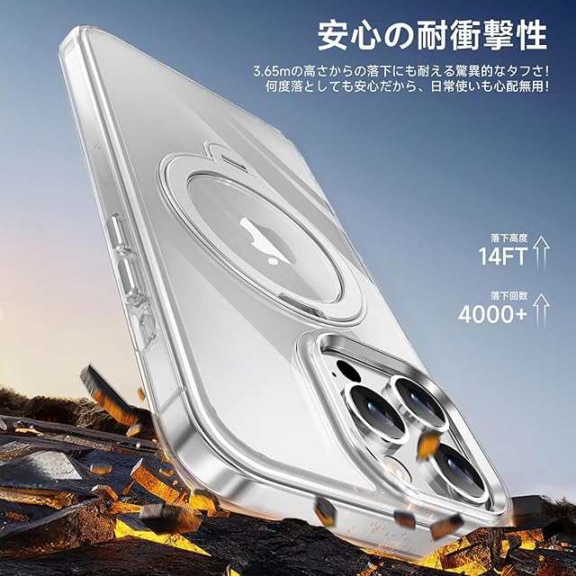 商品名:【透き通る上質感・多機能360°回転スタンド】KMAMBNG iPhone 13 Pro 用 ケース Magsafe対応【耐衝撃・金属感・真空メッキ・黄変防止・ストラップホール付き】縦横両立 角度自在 調整可能 磁吸機能でワイヤレス充電対応 おしゃれ スマホケース (クリア, iPhone 13 Pro)