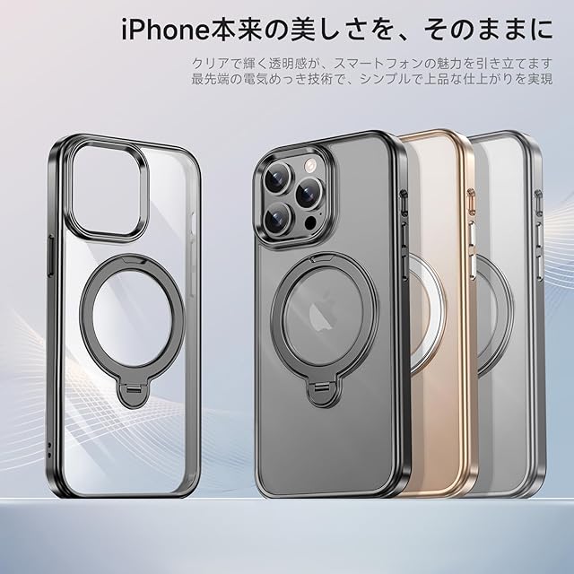 商品名:【透き通る上質感・多機能360°回転スタンド】KMAMBNG iPhone 13 ProMax 用 ケース Magsafe対応【耐衝撃・金属感・真空メッキ・黄変防止・ストラップホール付き】縦横両立 角度自在 調整可能 磁吸機能でワイヤレス充電対応 おしゃれ スマホケース (ブラック, iPhone 13 Pro Max)