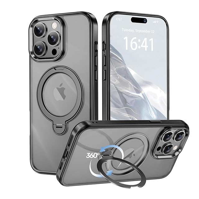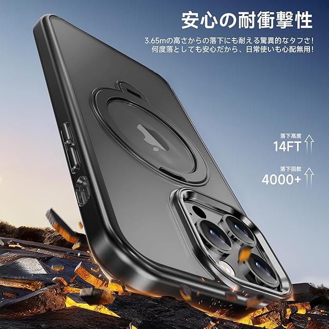 商品名:【透き通る上質感・多機能360°回転スタンド】KMAMBNG iPhone 14 ProMax 用 ケース Magsafe対応【耐衝撃・金属感・真空メッキ・黄変防止・ストラップホール付き】縦横両立 角度自在 調整可能 磁吸機能でワイヤレス充電対応 おしゃれ スマホケース (ブラック, iPhone 14 Pro Max)