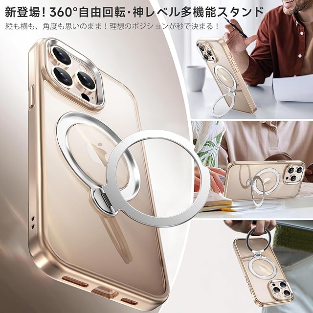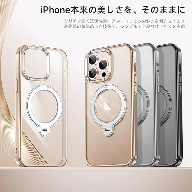 商品名:【透き通る上質感・多機能360°回転スタンド】KMAMBNG iPhone 14 ProMax 用 ケース Magsafe対応【耐衝撃・金属感・真空メッキ・黄変防止・ストラップホール付き】縦横両立 角度自在 調整可能 磁吸機能でワイヤレス充電対応 おしゃれ スマホケース (ローズゴールド, iPhone 14 Pro Max)