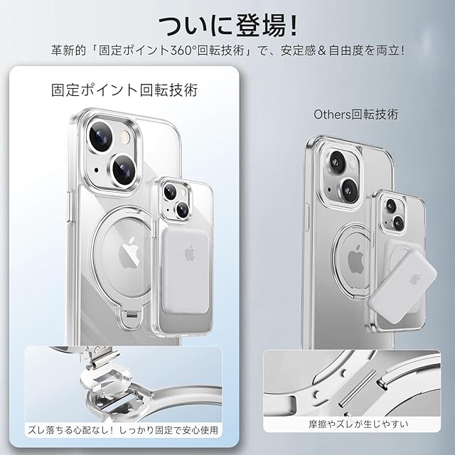 【超磁力&多様なMagSafe製品対応】業界最強のN52磁石を搭載し、16Nの強力な磁力を実現。車載ホルダーとの併用で、悪路や激しい振動でも落下の心配がありません。MagSafe用ワイヤレス充電器、大容量モバイルバッテリー、ウォレットにも即対応可能で、便利に使用できます。冷蔵庫やロッカーなどの鉄部分にも取り付け可能、自由に動画視聴が楽しめます。※鉄の含有量や分布面積によって吸着力が弱くなる場合があります。【①本製品はMagSafeデバイスに対応していますが、Magsafeウォレット使用時に「探す」機能は表示されません;②QIワイヤレス充電には対応しておりませんので、ご購入前にご検討いただければ幸いです。】